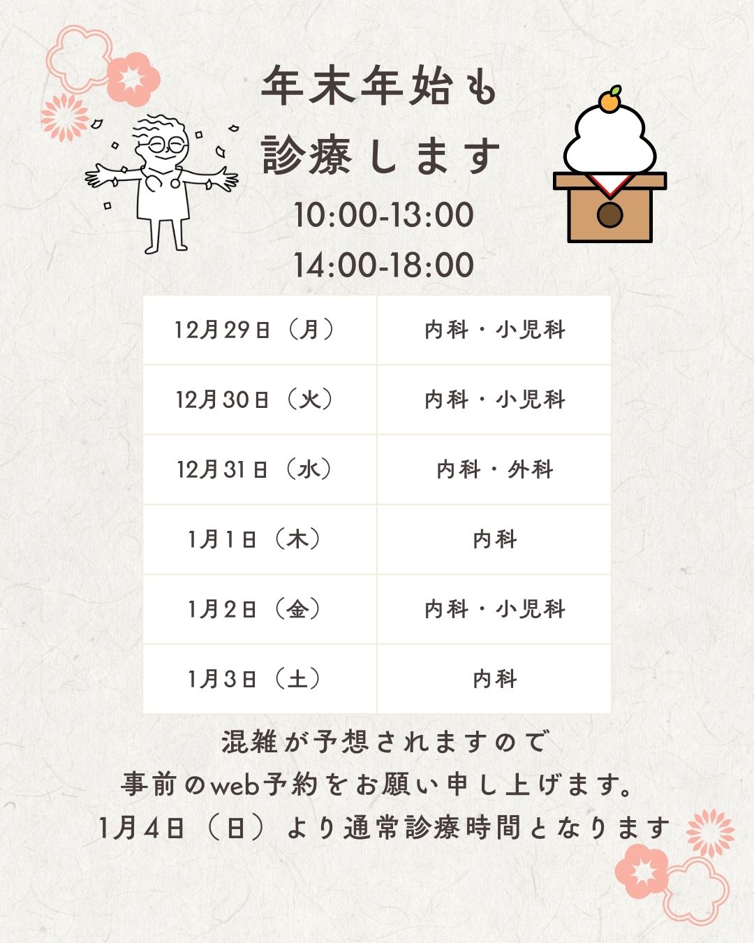 NEWS すべて すべて お知らせ 小児科ブログ 院長ブログ 2026.01.28 お知らせ 1月29日 休診について もっと見る 2026.01.25 お知らせ 1/25 ひでまる日曜救急は内科・外科(整形外科)・小児科 です もっと見る 2026.01.18 お知らせ 1/18 ひでまる日曜救急診療 内科・外科(整形外科)・小児科 もっと見る 2026.01.17 お知らせ 1月17日 ひでまる土曜救急外来 内科・外科(整形外科)・小児科 もっと見る 2026.01.13 お知らせ 小児科の診療が再開しました もっと見る 2026.01.11 お知らせ 1/11 日曜ひでまる救急外来 内科・外科(整形外科)・小児科 もっと見る 2026.01.05 お知らせ 小児科休診について:1/5〜1/9 もっと見る 2026.01.03 お知らせ 1月4日(日)ひでまる日曜救急です! もっと見る 2025.12.29 お知らせ 🎍年末年始の診療時間について🎍 もっと見る 2025.12.28 お知らせ 12月28日 ひでまる日曜救急は内科・外科(整形外科)・小児科 もっと見る 1 / 1812310次へ